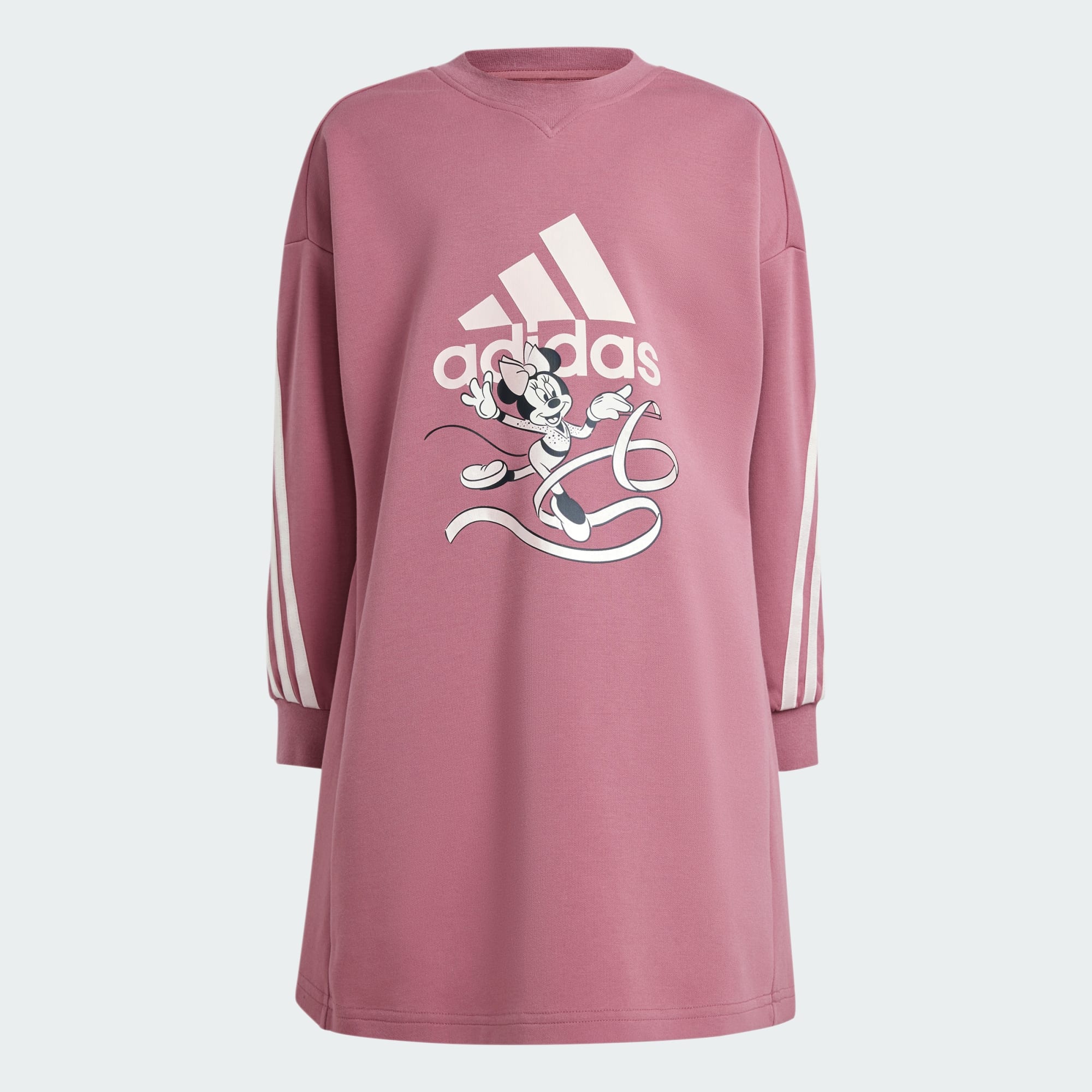 Inspired by the sparkly shine of gymnastics leotards, this adidas dress brings the magic. It lets kids express their love for Minnie Mouse in a metallic design that shows off their favourite character performing a rhythmic gymnastics routine. Ribbed cuffs help hold the sleeves in place while a loose fit keeps the shape twirl-ready and perfect to layer over leggings. This dress is made for playing all day — and dreaming of winning gold. By choosing recycled, we are able to reuse materials that have already been created, which helps to reduce waste. Renewable materials choices will help us to remove our reliance on finite resources. Our products made with a blend of recycled and renewable materials feature at least 70% total of these materials.