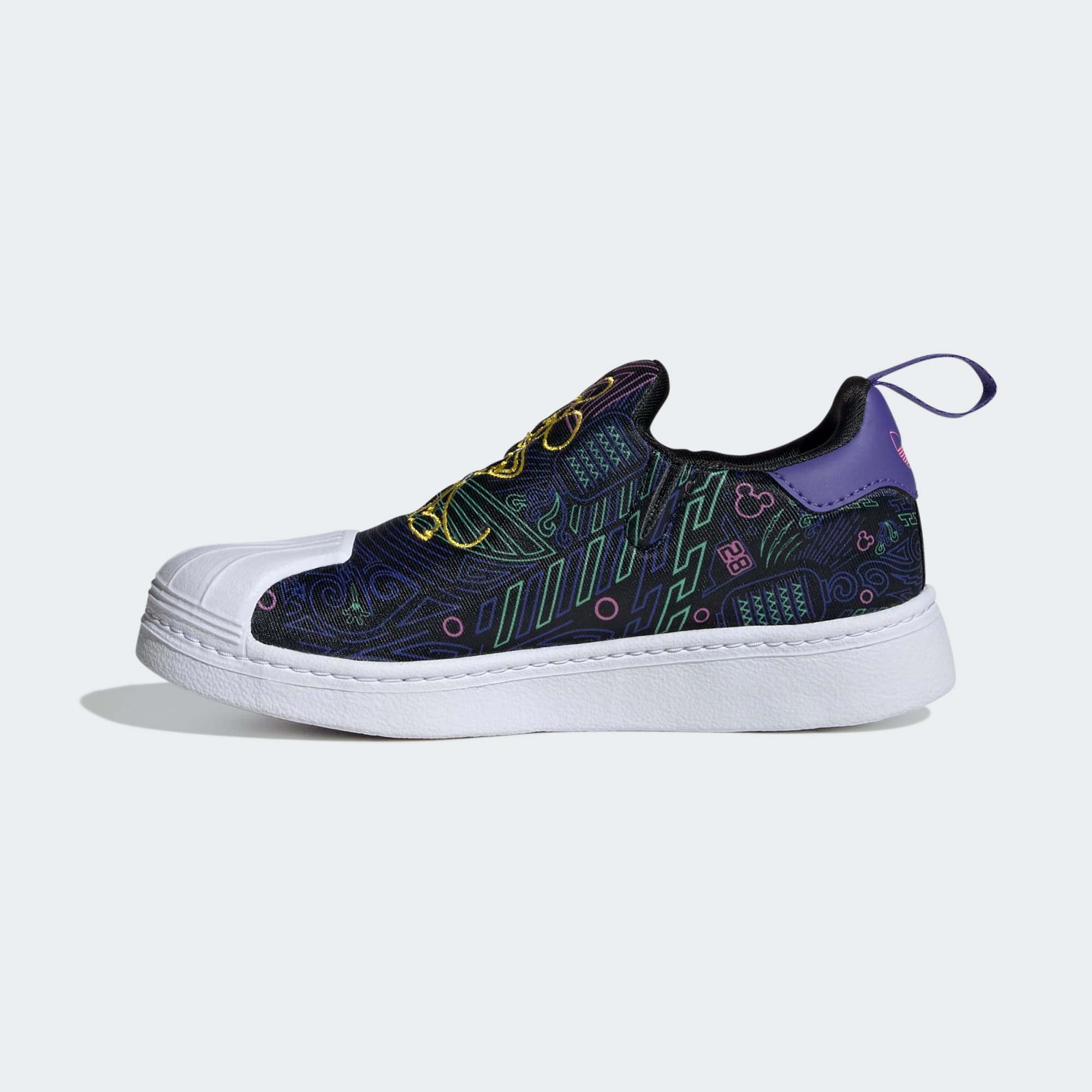 The iconic adidas silhouette teams up with Disney's Mickey Mouse for a playful take on a streetwear staple for kids. Whether at the park or in the backyard, these adidas Superstar shoes keep little feet comfortable while showing off a fun and vibrant side. The LYCRA® upper and rubber outsole deliver a comfortable, familiar feel with every step. Mickey's neon graphics splashed across the side panels add a pop of colour. Blending sport and street culture with an animated favourite, this look brings classic joy. This product features at least 20% recycled materials. By reusing materials that have already been created, we help to reduce waste and our reliance on finite resources and reduce the footprint of the products we make.