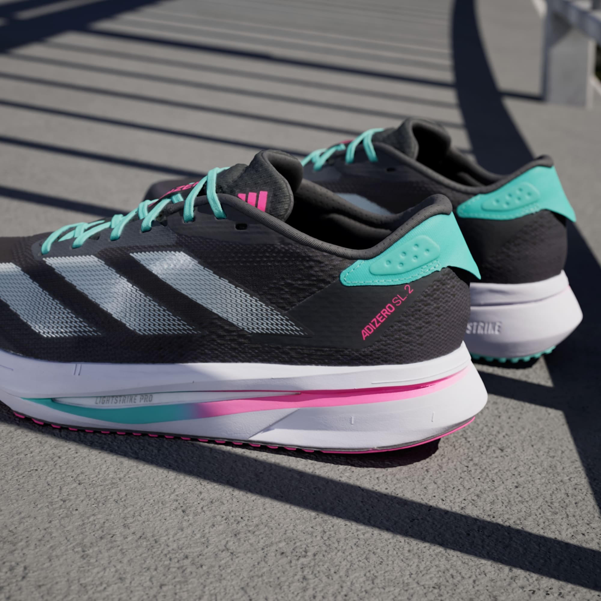 Experience the thrill of breaking personal records in a shoe that's as fast as you are. These adidas Adizero running shoes are equipped with responsive Lightstrike Pro, super-light cushioning that delivers energy return for next-level speed. The engineered mesh upper provides breathability and targeted support where you need it most to keep you flying to the finish. This product features at least 20% recycled materials. By reusing materials that have already been created, we help to reduce waste and our reliance on finite resources and reduce the footprint of the products we make.