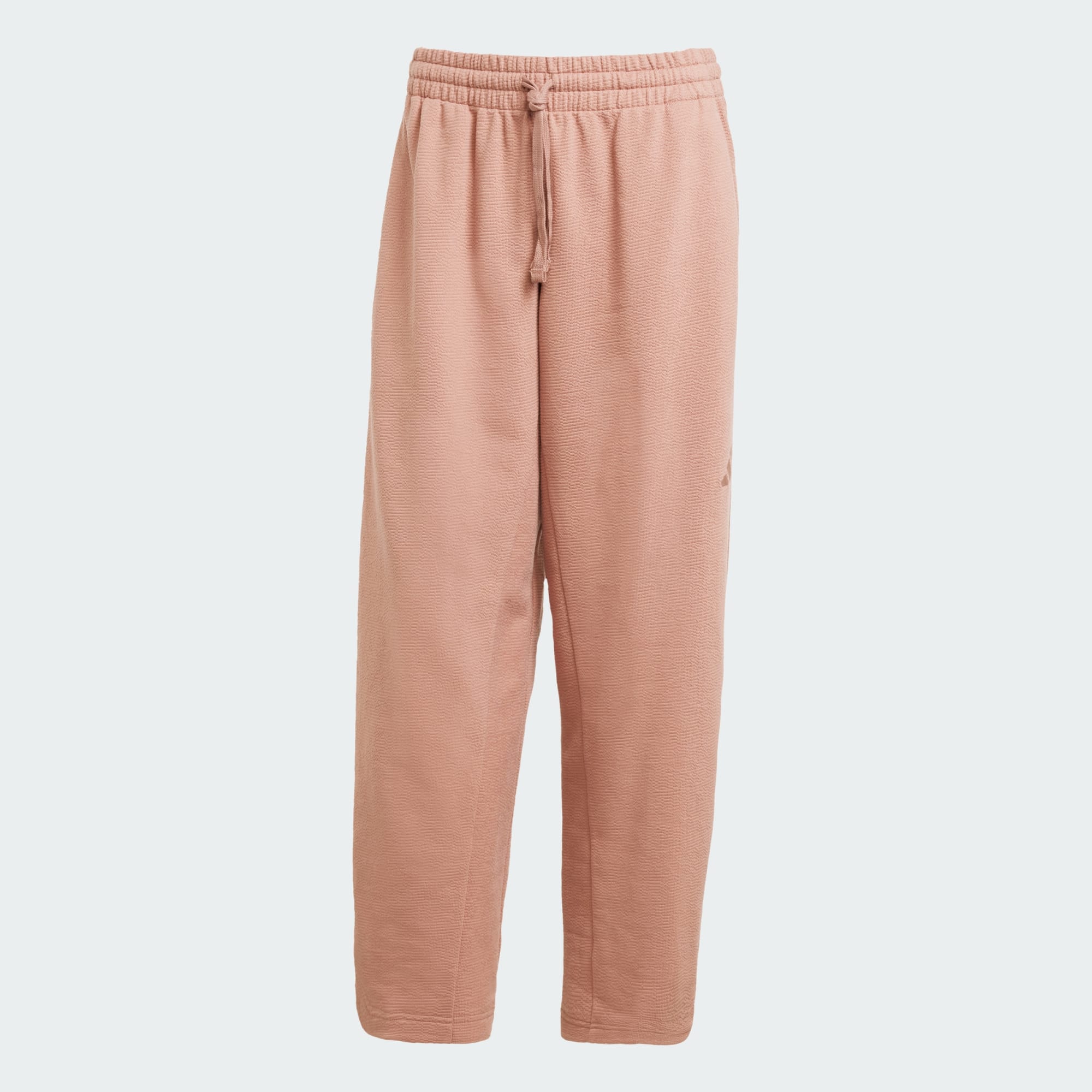 In love with this textured fabric. It’s a medium weight that feels cozy yet breathable and cool. I think these will be awesome airplane pants (if they had a hidden zippered pocket somewhere that’d be complete chefs kiss!). Immediately searched the site for other pieces or a top in the same material but no other women’s products available at this time. The cut is modern and elevates the lounge look. I think I can get away wearing these to the office on a casual day. I haven’t washed these yet but will plan to hang dry as I do find adidas can shrink a bit when machine dried. Overall super happy with these!