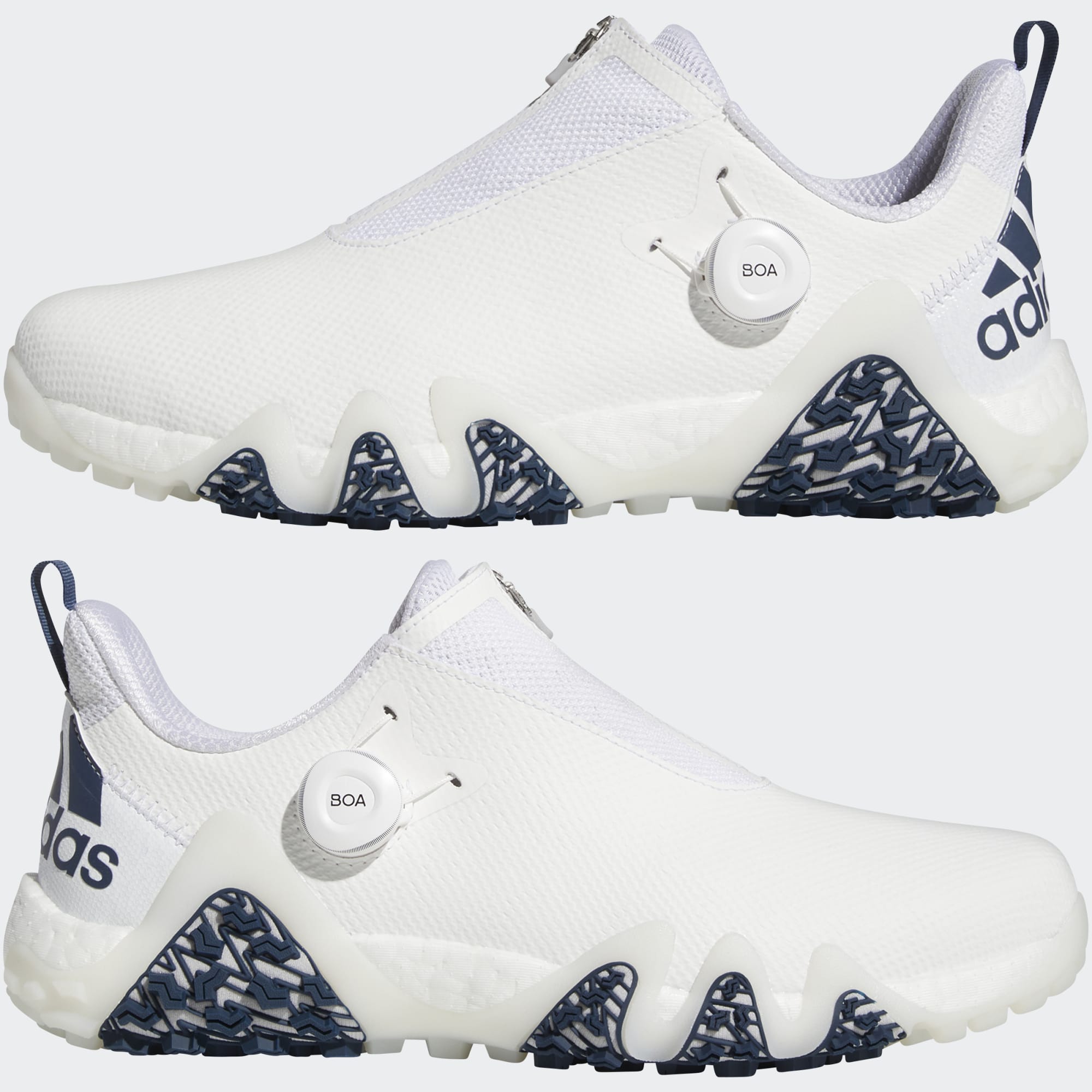 Step onto the course, step up your style and turn up your game with the adidas CODECHAOS22 golf shoes. Every detail of these spikeless shoes is built with a job to do. From the wrap-around Twist Grip outsole to full-length BOOST, they bring swing-boosting traction and a grounded, energized feel to the course. The BOA® Fit System lets you fine-tune the fit with the turn of a dial. A waterproof and stain-resistant upper keeps feet dry and clean so your focus stays on the game. Tour-level performance has never looked this good.