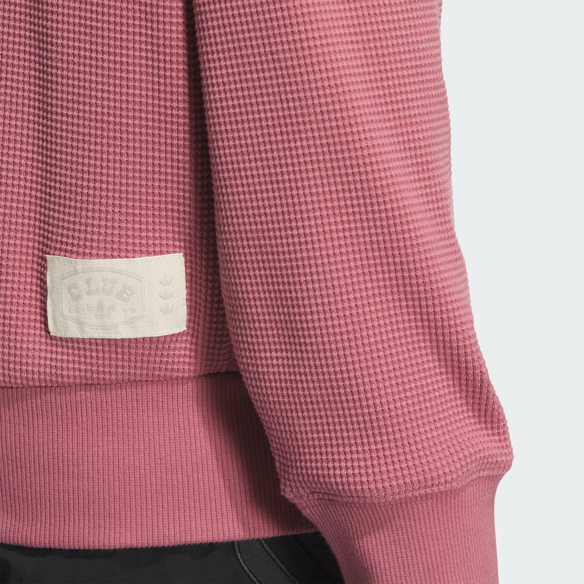 A V-neck sweatshirt cut loose and made with textured waffle-knit construction.