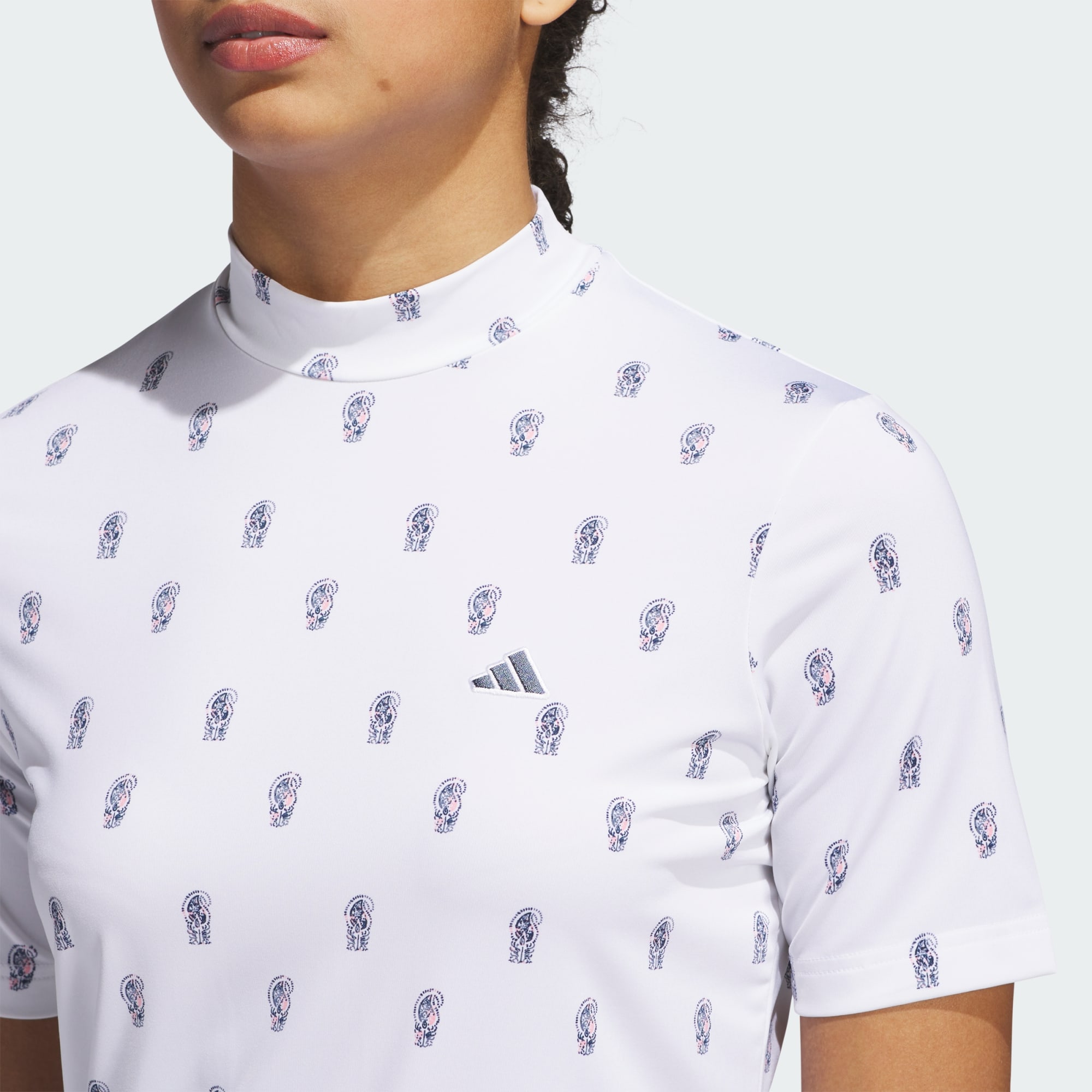 Performance meets style in this adidas golf shirt. Lightweight single jersey comes with plenty of stretch for all-day comfort through your morning round and afternoon activities. Its mock-neck design and allover paisley print give it a modern look that wears well on and off the course. This product is made with at least 70% recycled materials. By reusing materials that have already been created, we help to reduce waste and our reliance on finite resources and reduce the footprint of the products we make.