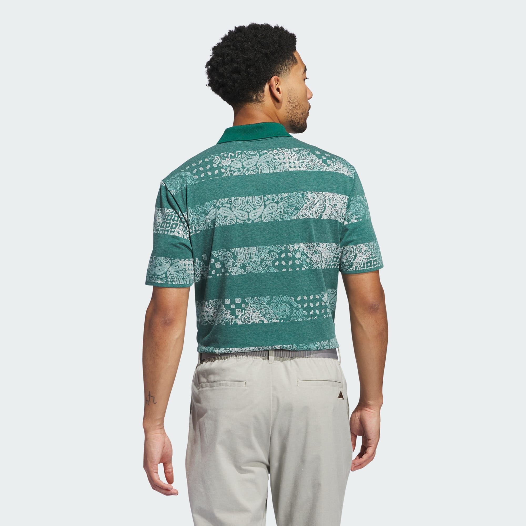 Pull on this adidas golf polo shirt in the morning and you're good to go for the day. Stretch fabric lets you twist and flex during your mid-day round, and the soft, cotton-like feel wears well from morning 'til night. The allover print pairs well with pants or shorts for maximum versatility.