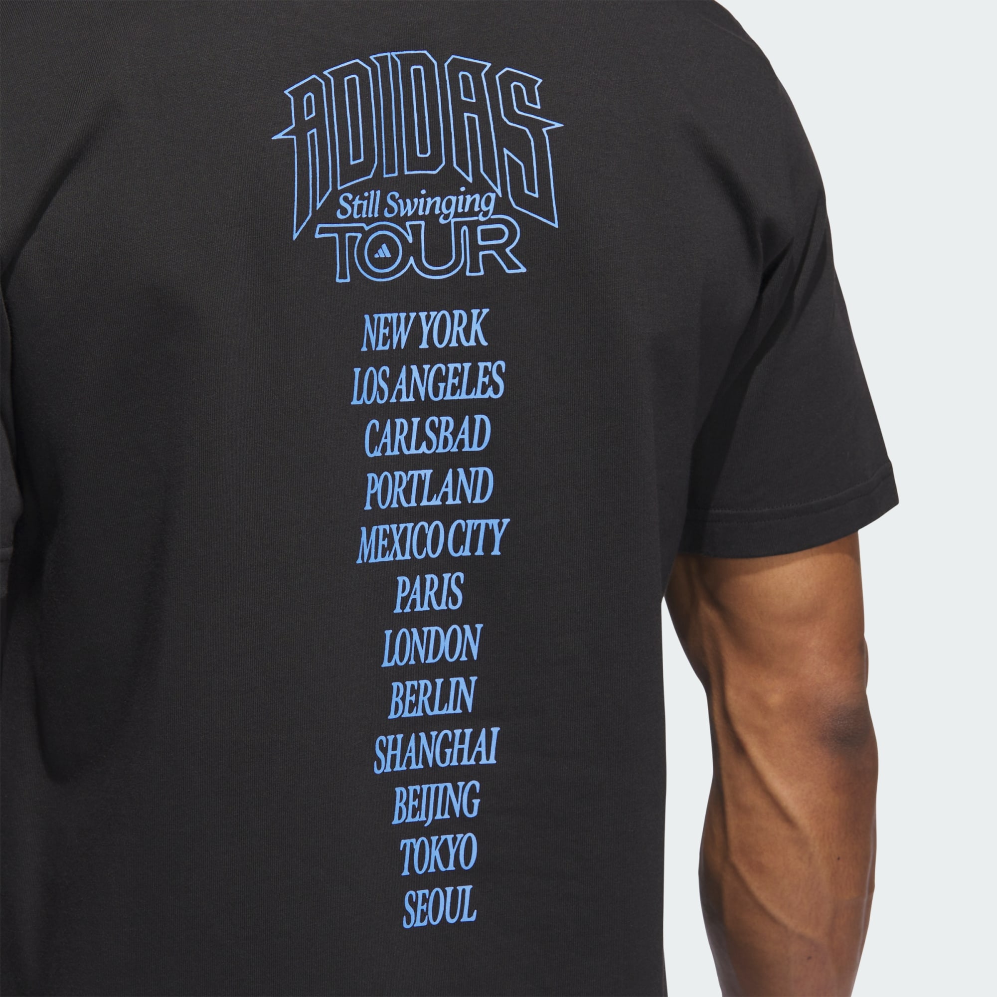 Still swinging. Share your dedication to the course with this adidas golf t-shirt. Skeleton graphics bring an unexpected concert tour style.
