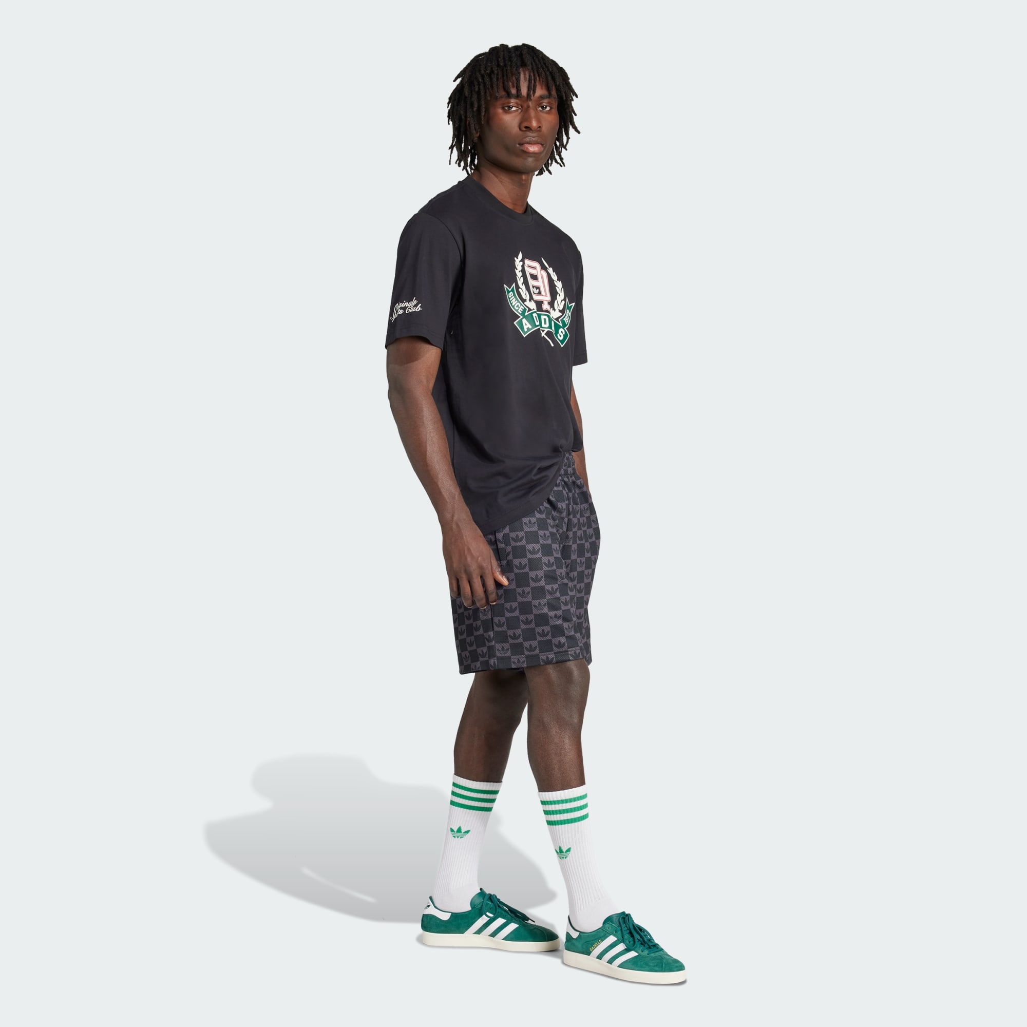 A tee with collegiate-style adidas graphics.