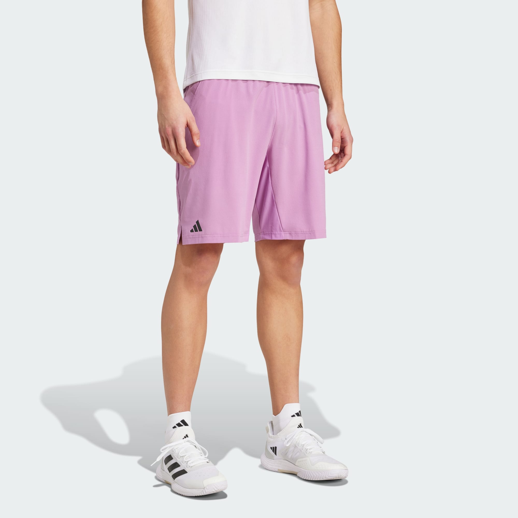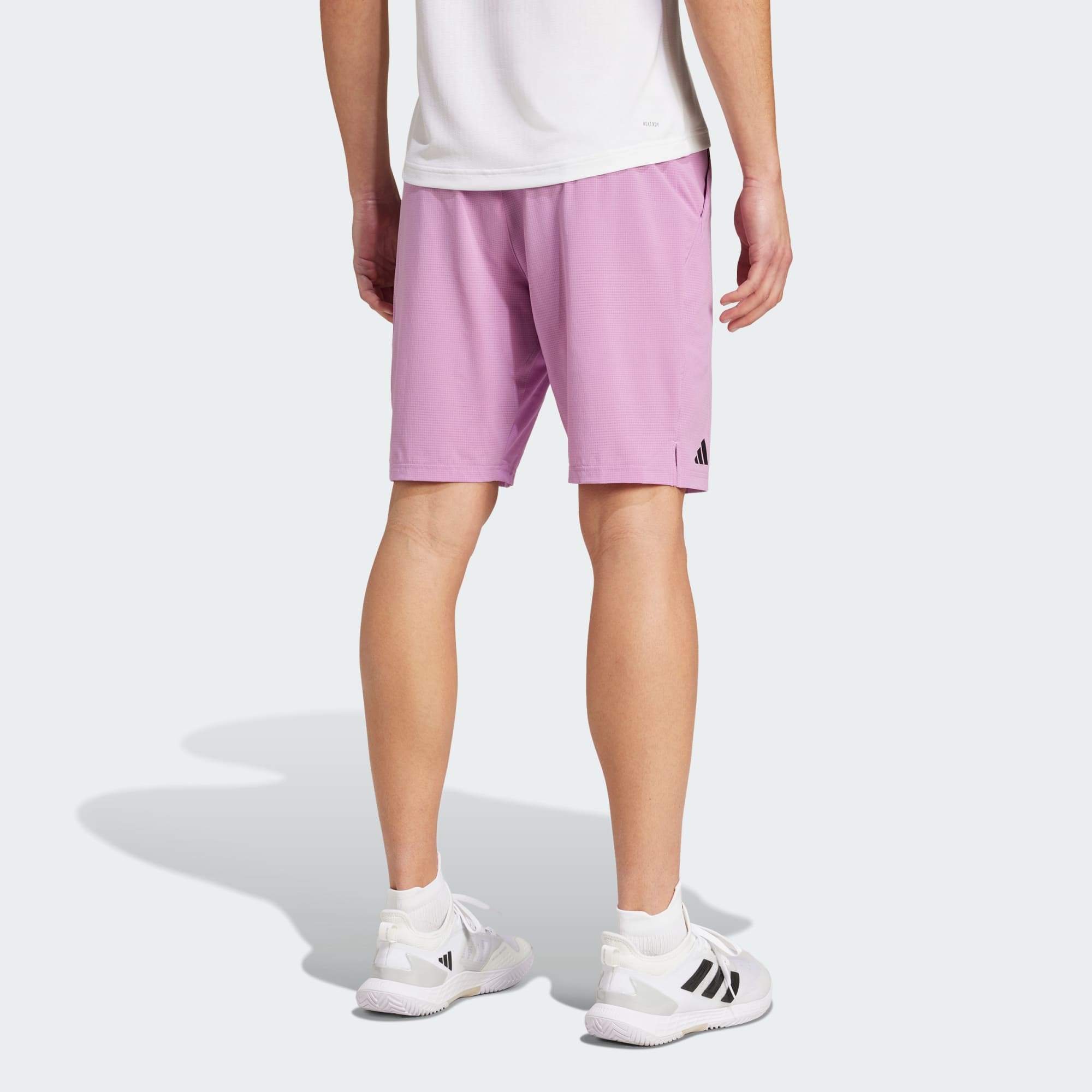 Stay on your game when the temperature soars. These adidas tennis shorts are lightweight and flexible, with HEAT.RDY to keep you cool through sunny days and intense rallies alike. Stretchy fabric at the inner leg allows you to sprint across the court with confidence while the drawcord waistband adjusts for a stay-put fit. This product is made with at least 70% recycled materials. By reusing materials that have already been created, we help to reduce waste and our reliance on finite resources and reduce the footprint of the products we make.
