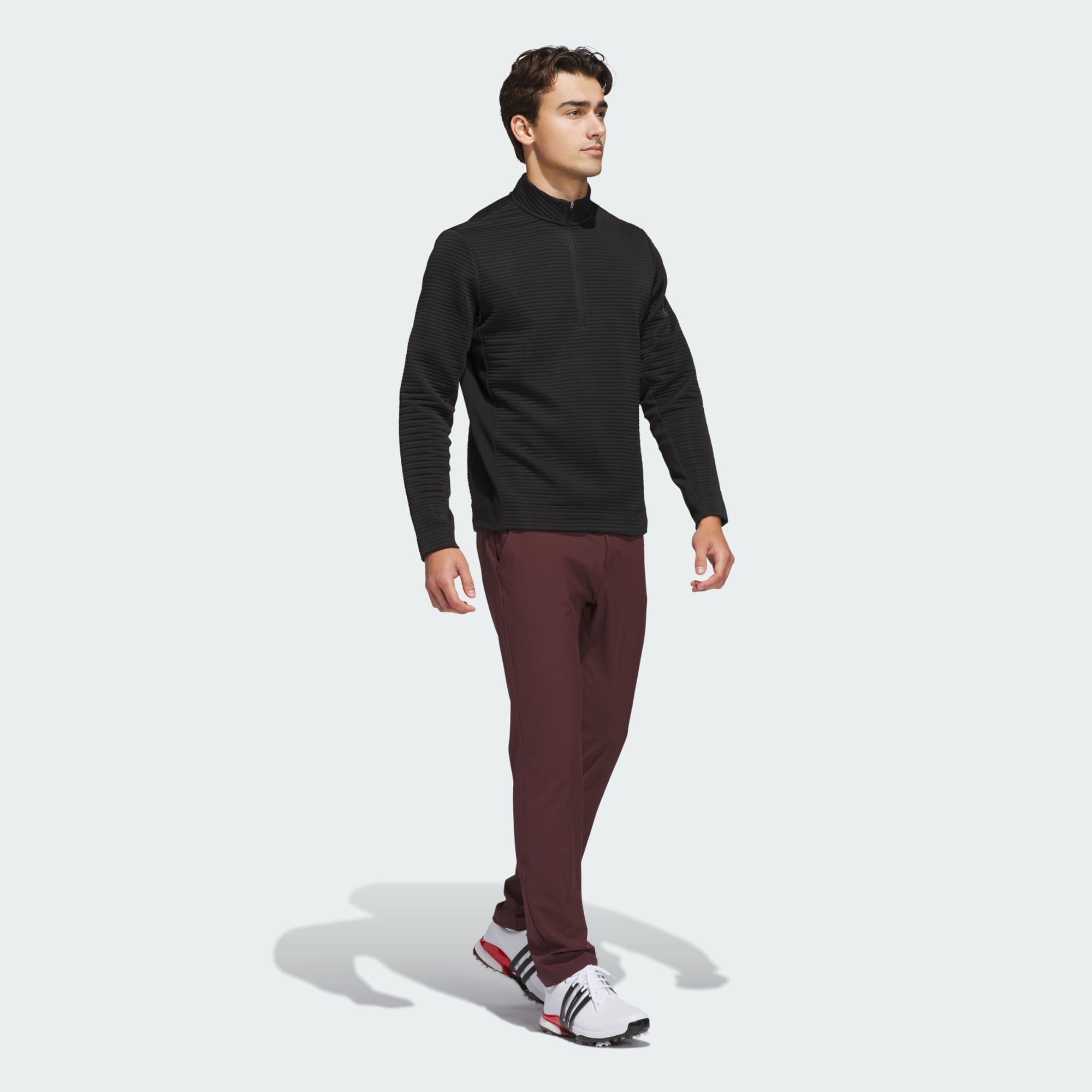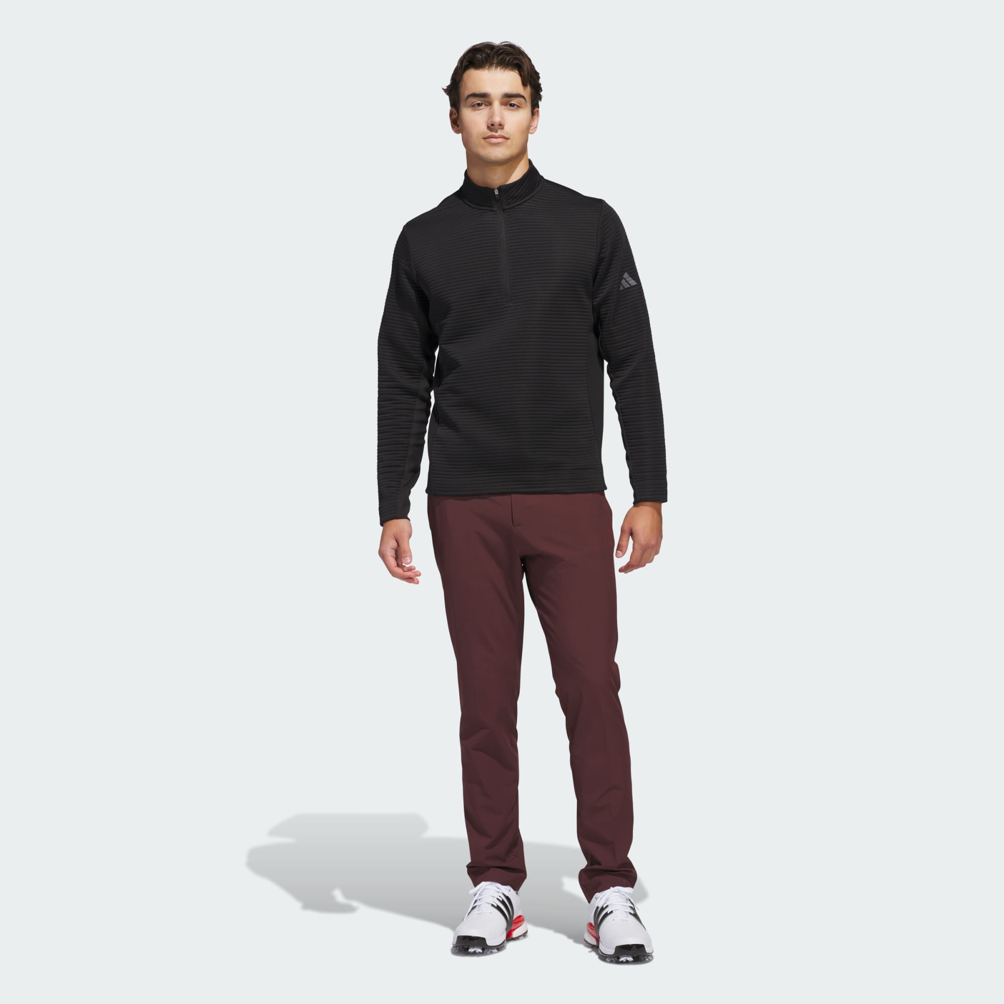 Meet the elements with this adidas golf pullover and play through without compromise. Soft, stretchy knit fends off the chill while a water-repellent finish sheds occasional light showers so you can focus on your game. The textured look and feel plays well on any course.
