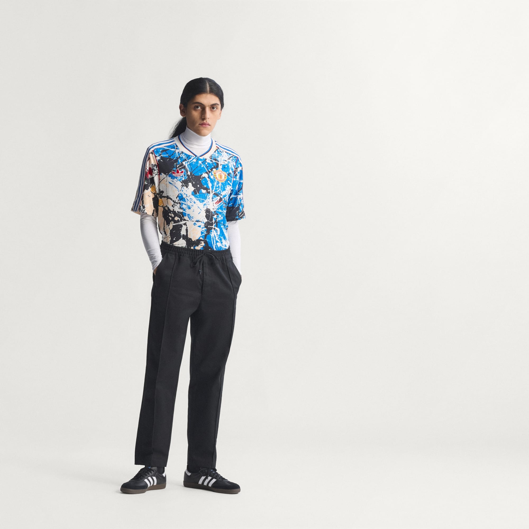 Visual featuring a Manchester United player wearing the new Manchester United x Stone Roses collection